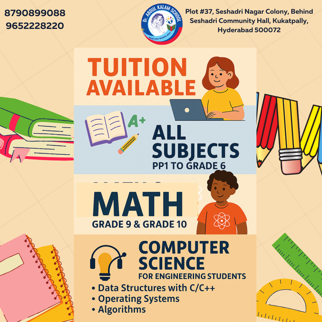 At Dr. Abdul Kalam School, learning doesnβt stop with the final bell. Our thoughtfully curated after-school programs are designed to support, challenge, and inspire students beyond regular classroom hours.